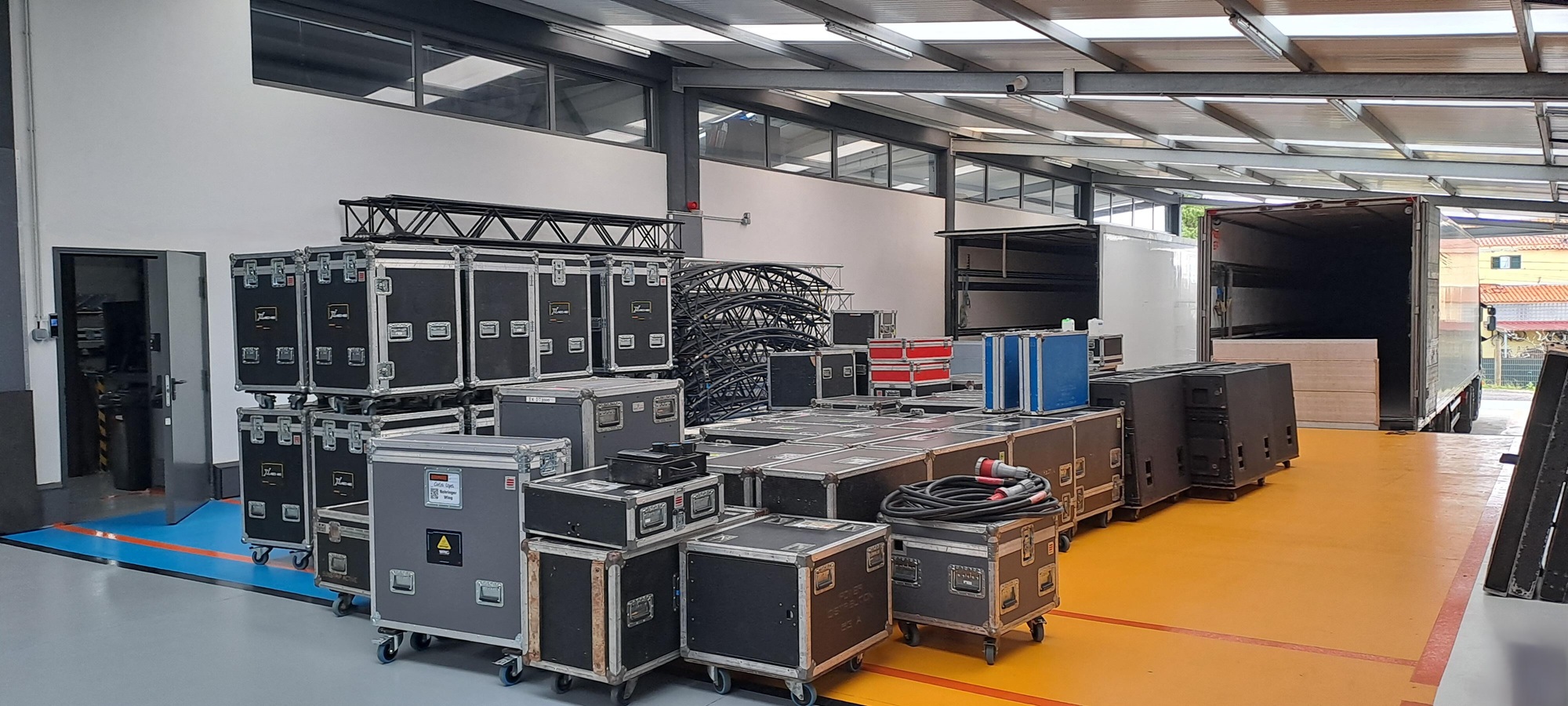 Central warehouse dedicated to storage, preparation and dispatch of audio, lighting and structural systems. Processes structured for large-scale productions, ensuring speed, control and full equipment traceability.